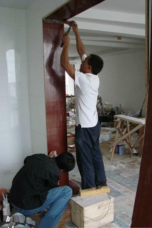 1、過門石、大理石窗臺的安裝。過門石的安裝可以和鋪地磚一起完成,也可以在鋪地磚之后,大理石窗臺的安裝一般在窗套做好之后,安裝大理石的工人會準備玻璃膠,順手就把大理石和窗套用玻璃膠封住了。